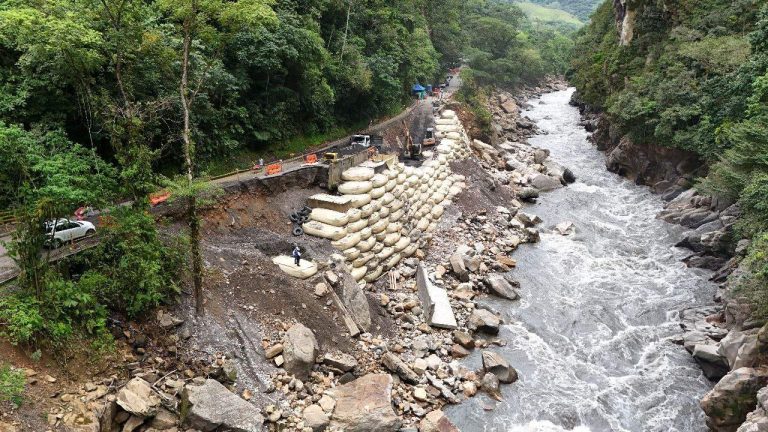El cierre de la vía en el sector de Piedra Campana se mantiene desde el pasado 15 de junio, cuando las fuertes lluvias provocaron la pérdida de la banca, dejando intransitable este tramo. Para restablecer el paso seguro, se está realizando la instalación de geocontenedores, una técnica que busca reforzar y estabilizar la carretera afectada.